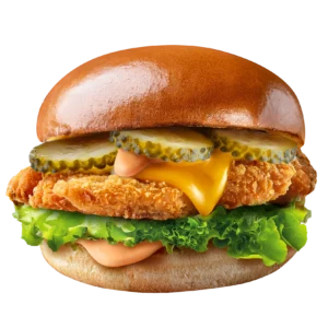 (breaded fillet, lettuce, pickles, cheddar, mayonnaise, dressing and a portion of fries)