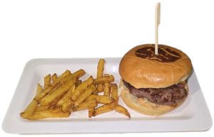 (Black Angus patty, mayonnaise, tomato, iceberg, cheddar, arugula and a portion of fries)